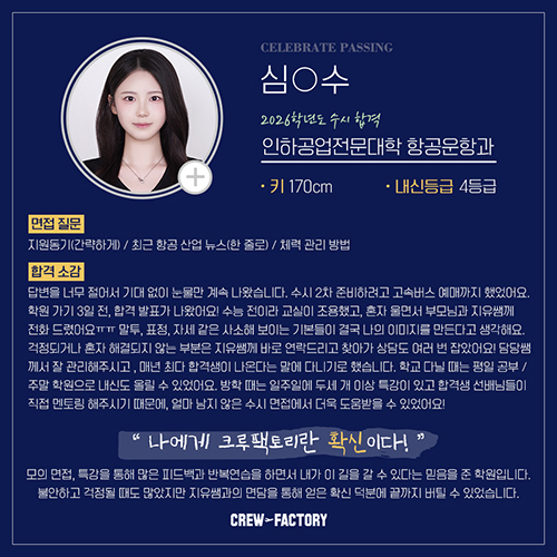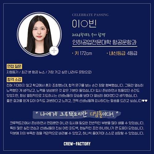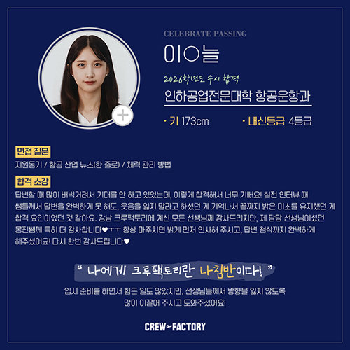합격생 간담회 3차💝 2/4년제 메이저 대학 항공과 합격! 인하공전 항공운항과/한서대 항공관광학과/연성대/백석대/한양여대/부천대/극동대 (feat.크루팩토리)
